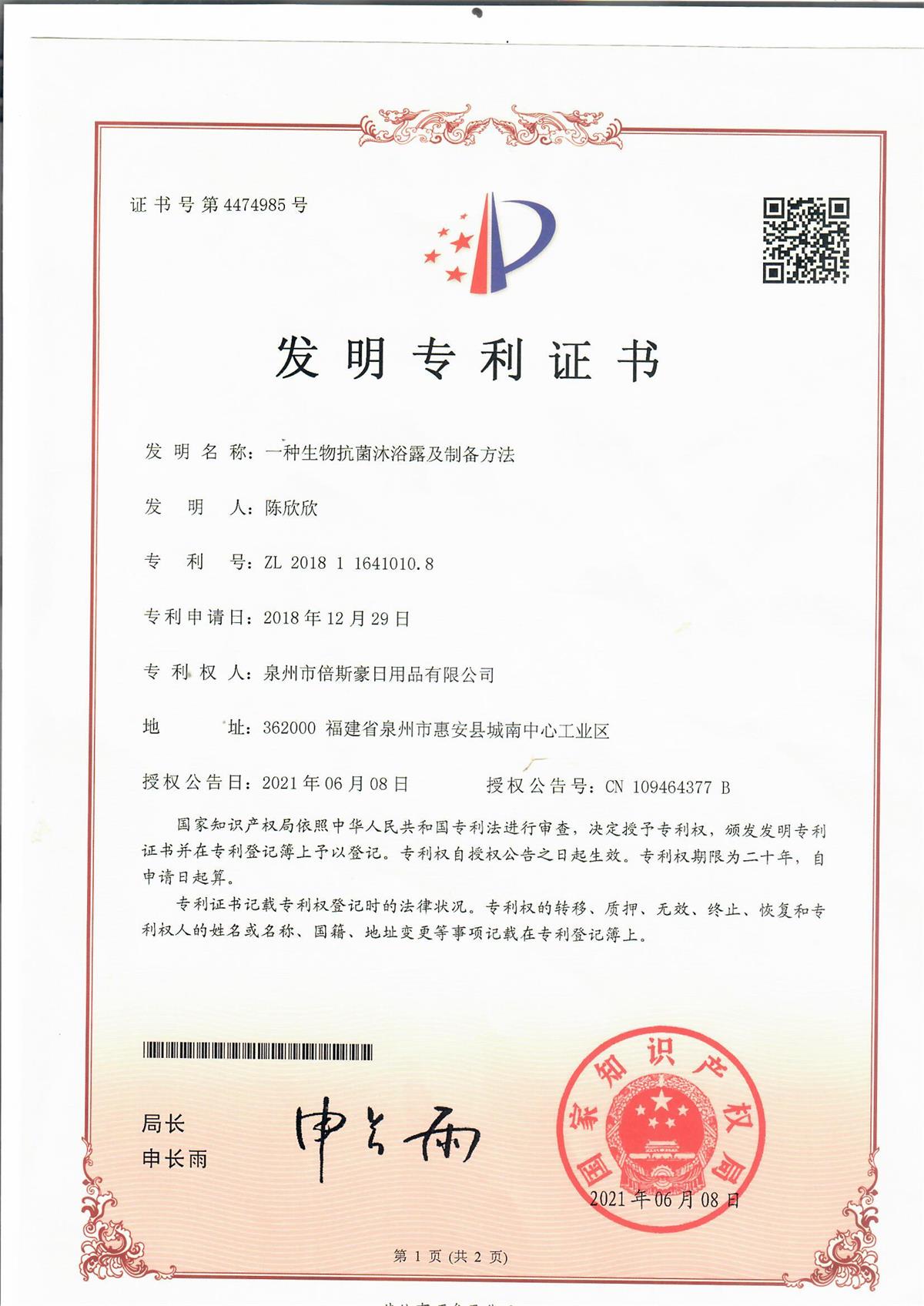 Got patent that the invention discloses a biological antibacterial shower gel and a preparation method.